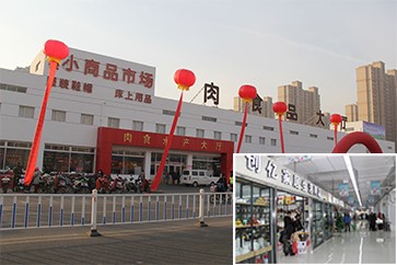 肉食水產(chǎn)交易大廳于2013年12月18日建成,由東西兩個(gè)大廳構(gòu)成,共156個(gè)攤位。東廳以經(jīng)營(yíng)牛肉、羊肉、凍品為主,分為:鮮肉區(qū)、熟食區(qū)、凍品區(qū)、活魚(yú)區(qū);西廳以經(jīng)營(yíng)蔬菜、副食、調(diào)料為主,肉菜搭配已經(jīng)形成了生鮮批零大廳。多年來(lái),肉食大廳嚴(yán)格實(shí)施市場(chǎng)準(zhǔn)入制度,建立系統(tǒng)的安全可追溯體系,規(guī)定只有符合具有全國(guó)知名豬肉生產(chǎn)加工品牌、公眾普遍認(rèn)可的生產(chǎn)廠家,且經(jīng)營(yíng)證照齊全、經(jīng)營(yíng)規(guī)范的大的經(jīng)銷(xiāo)商才可以入市經(jīng)營(yíng),否則一律不準(zhǔn)入場(chǎng)經(jīng)營(yíng),同時(shí)率先引入健康安全的“千喜鶴”冷鮮肉,凈化了肉食品消費(fèi)環(huán)境,真正實(shí)現(xiàn)了優(yōu)質(zhì)優(yōu)價(jià),使美通市場(chǎng)成為經(jīng)營(yíng)中高端肉市場(chǎng),成為老百姓信得過(guò)的放心肉市場(chǎng),經(jīng)營(yíng)效益穩(wěn)步提升,對(duì)引導(dǎo)百姓健康消費(fèi)、引領(lǐng)呼市肉食品市場(chǎng)健康發(fā)展起到了帶頭作用。